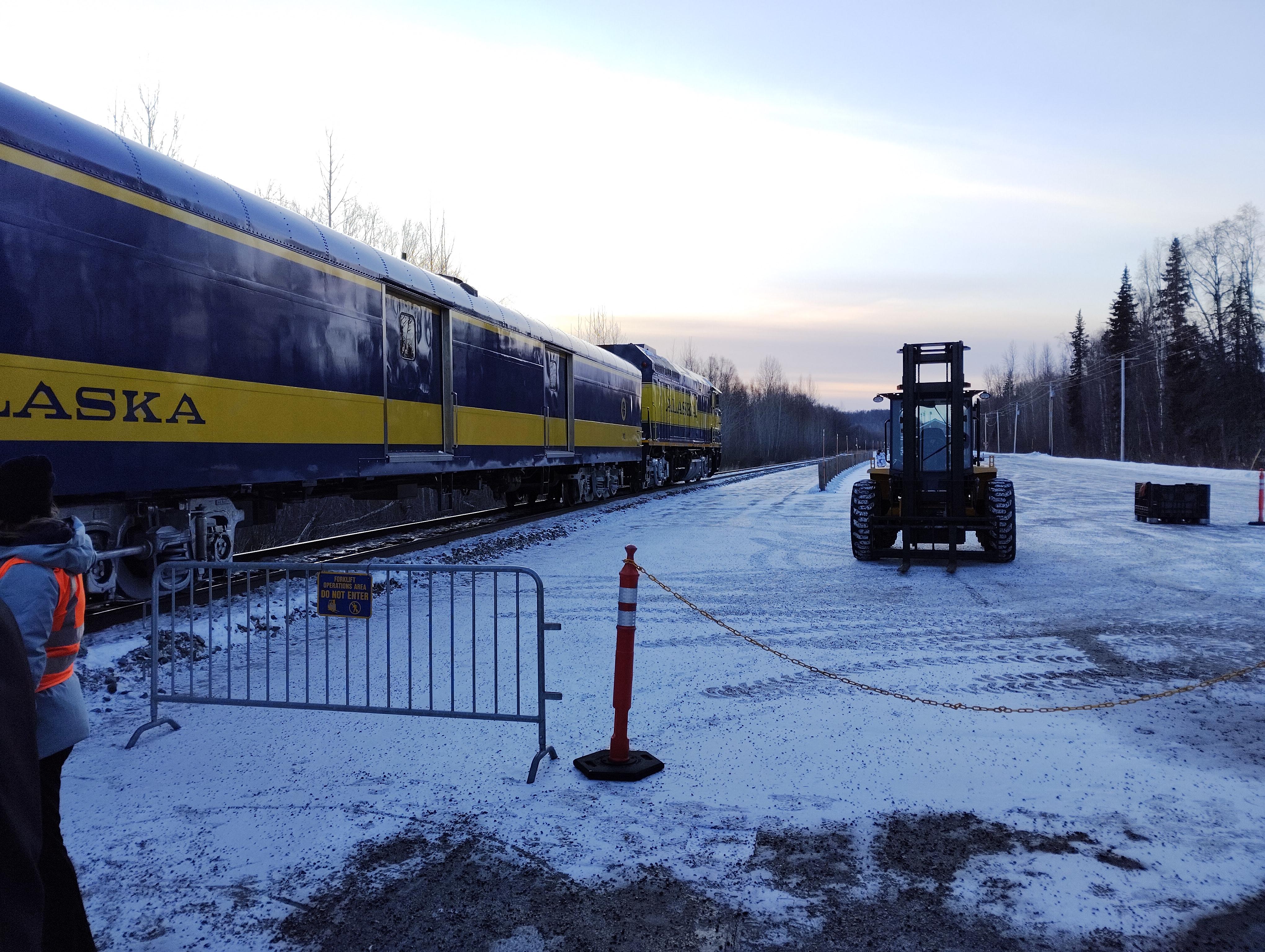第二天我们起个大早坐火车去Fairbanks。因为极光列车一周只有一班,所以我们的旅行基本是围绕着极光列车安排的。导游 John 前来送行,所以我问了他关于熊闯入家中的故事。 他说,有一次他没有关门,回来后发现熊在他家翻箱倒柜,把能吃的东西都吃了,除了他刚烤好的松饼。